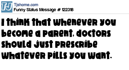X says I think that whenever you become a parent, doctors should just prescribe whatever pills you want.