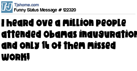 - # 122273 Wow... over 500,000 people attended Obama's Inauguration today.. and only 7 missed work