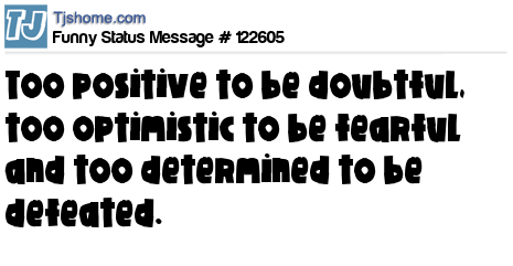 X is too positive to be doubtful, too optimistic to be fearful and too determined to be defeated.