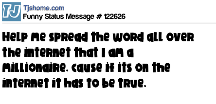 X Help me spread the word all over the internet that I am a millionaire. cause if its on the internet it has to be true.
