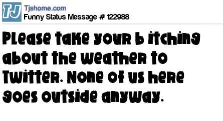 X says Please take your b itching about the weather to Twitter. None of us here goes outside anyway.