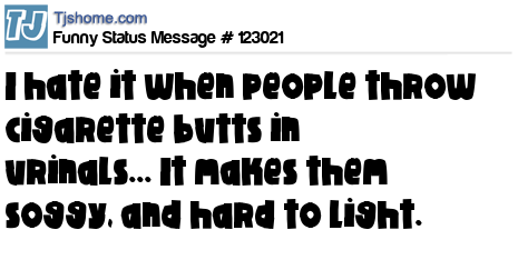 X I hate it when people throw cigarette butts in urinals... It makes them soggy, and hard to light.