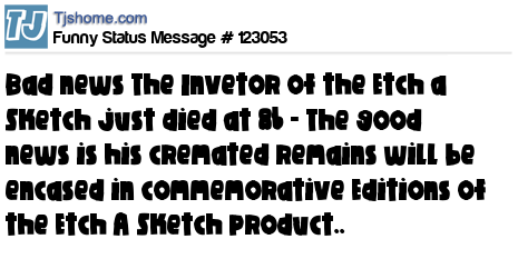 X is Bad news The Invetor of the Etch a Sketch just died at 86 - The good news is his cremated remains will be encased in commemorative Editions of the Etch A Sketch product..