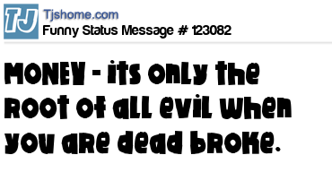- # 84229 money is the root of all evil I thought But when I'm broke is usually when I have the evilest thoughts.