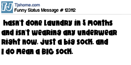 X hasn't done laundry in 5 months and isn't wearing any underwear right now, just a big sock. and I do mean a BIG sock.