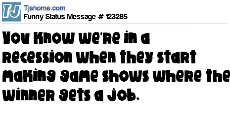 X says You know we're in a recession when they start making game shows where the winner gets a job.