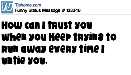 X says How can I trust you when you keep trying to run away every time I untie you.