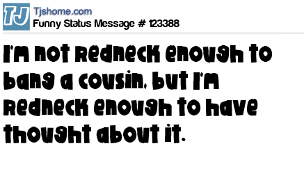 X says I'm not redneck enough to bang a cousin, but I'm redneck enough to have thought about it.