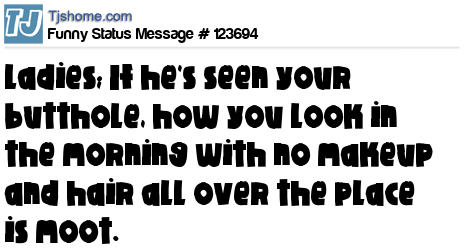 X says Ladies; If he's seen your butthole, how you look in the morning with no makeup and hair all over the place is moot.