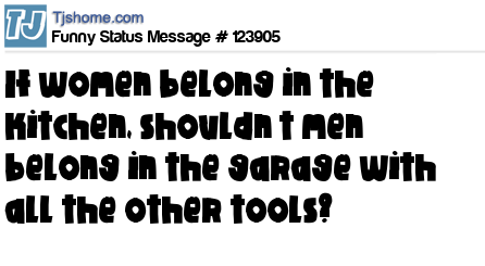 X says If women belong in the kitchen, shouldn’t men belong in the garage with all the other tools?
