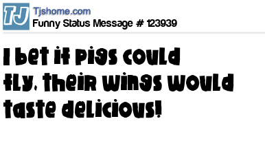 - # 96701 If pigs really could fly I bet their wings would taste delicious.