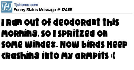 - # 124948 I ran out of deodorant this morning, so I spritzed on some windex..... Now birds keep crashing into my armpits
