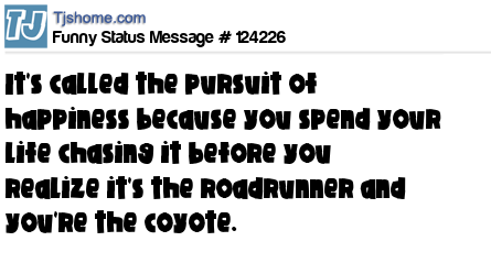 X says It's called the pursuit of happiness because you spend your life chasing it before you realize it's the roadrunner and you're the coyote.