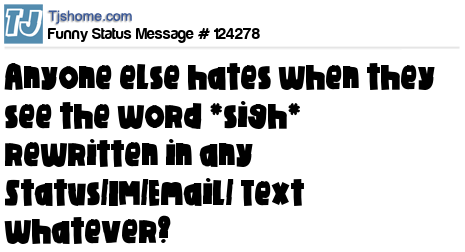 X is Anyone else hates when they see the word *sigh* rewritten in any Status/IM/Email/ Text whatever?