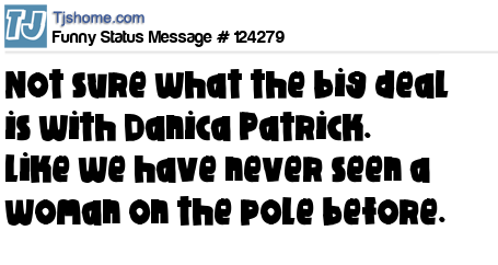X Not sure what the big deal is with Danica Patrick. Like we have never seen a woman on the pole before.