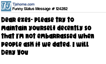 X is Dear exes- please try to maintain yourself decently so that I'm not embarrassed when people ask if we dated. I will Deny You