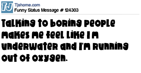 X says Talking to boring people makes me feel like I’m underwater and I'm running out of oxygen.