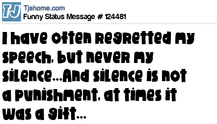 X I have often regretted my speech, but never my silence...And silence is not a punishment, at times it was a gift...