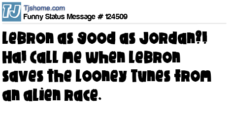 X is LeBron as good as Jordan?! Ha! Call me when LeBron saves the Looney Tunes from an alien race.