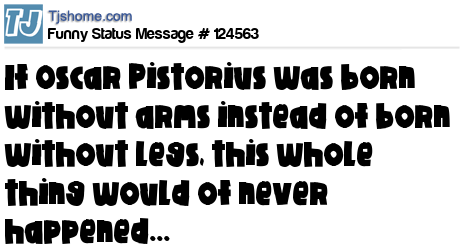 X says If Oscar Pistorius was born without arms instead of born without legs, this whole thing would of never happened...