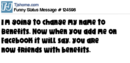 - # 140146 Tempted to change my name on Facebook to Benefits so when someone adds me it will say "You are now friends with Benefits."