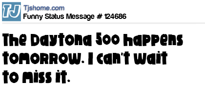 X The Daytona 500 happens tomorrow. I can't wait to miss it.