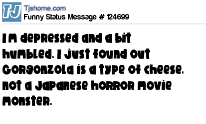 X I’m depressed and a bit humbled. I just found out Gorgonzola is a type of cheese, not a Japanese horror movie monster.