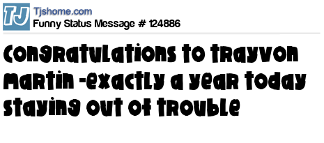 - # 123880 congratulations to trayvon martin - almost one year staying out of trouble
