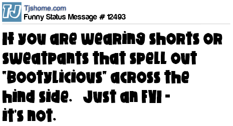 X If you are wearing shorts or sweatpants that spell out "Bootylicious" across the hind side. Just an FYI - it's not.