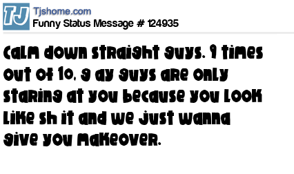 X says Calm down straight guys. 9 times out of 10, g ay guys are only staring at you because you look like sh it and we just wanna give you makeover.
