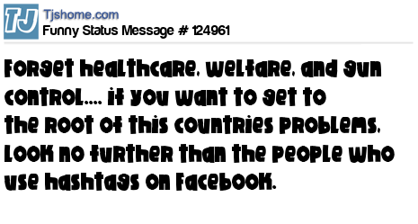 X says Forget healthcare, welfare, and gun control.... if you want to get to the root of this countries problems, look no further than the people who use hashtags on Facebook.