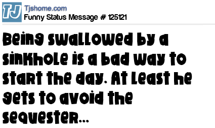 X says Being swallowed by a sinkhole is a bad way to start the day. At least he gets to avoid the sequester...