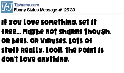 - # 131197 If you love something, set it free. Maybe not dogs with rabies though. Or killer bees or pretty much any domesticated animal into the wild. Lots of stuff really. Look, the point is don't love anything.