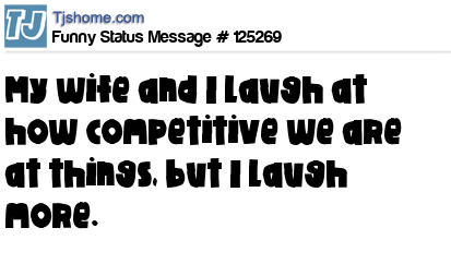 X says My wife and I laugh at how competitive we are at things, but I laugh more.