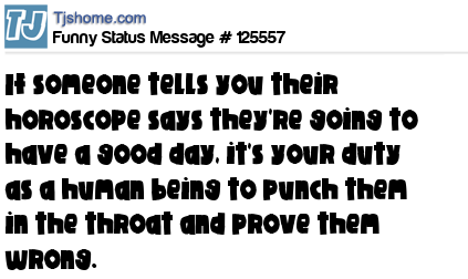 X says If someone tells you their horoscope says they're going to have a good day, it's your duty as a human being to punch them in the throat and prove them wrong.