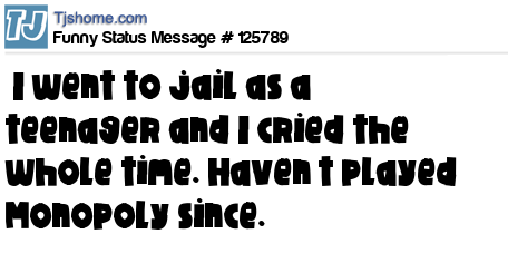 - # 173565 My brother took going to jail really badly. He refused food, drinks. He spat and swore at anyone who came near him and started throwing things everywhere. After that we NEVER played monopoly again.