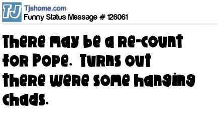 - # 125993 According to planned parenthood we have a new Pope! Welcome Pope Smear. I personally would have voted for Pope Awheelie..
