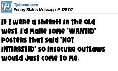 X says If I were a sheriff in the old west, I'd make some "WANTED" posters that said "NOT INTERESTED" so insecure outlaws would just come to me.