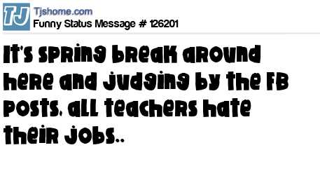 X says it's spring break around here and judging by the FB posts, all teachers hate their jobs..