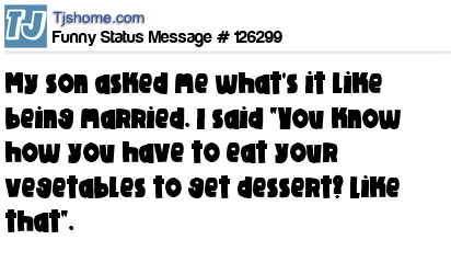 X is My son asked me what's it like being married. I said "You know how you have to eat your vegetables to get dessert? Like that".