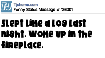 - # 157656 I slept like a log last night. Woke up this morning in the fireplace.