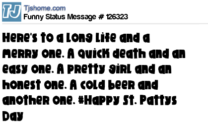 X is Here's to a long life and a merry one. A quick death and an easy one. A pretty girl and an honest one. A cold beer and another one. #Happy St. Pattys Day