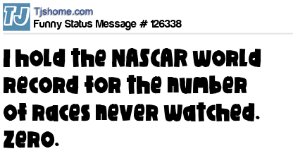 X I hold the NASCAR world record for the number of races never watched. Zero.