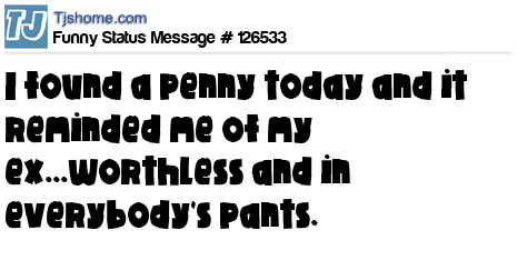 X I found a penny today and it reminded me of my ex...worthless and in everybody's pants.