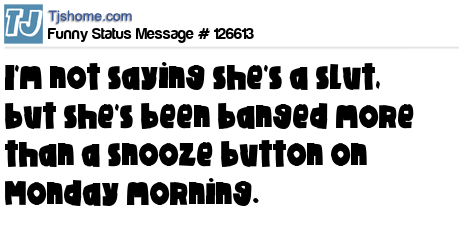 - # 126676 I’m not saying she’s a slut, but she’s been banged more times than a snooze button on Monday morning.