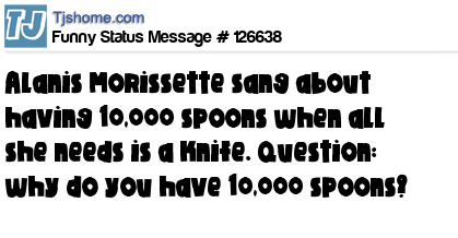 X says Alanis Morissette sang about having 10,000 spoons when all she needs is a knife. Question: why do you have 10,000 spoons?