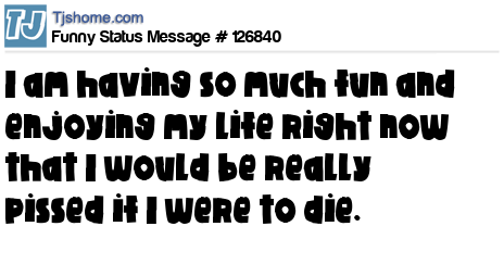 X says I am having so much fun and enjoying my life right now that I would be really pissed if I were to die.