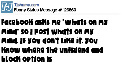 X Facebook asks me "Whats on my mind" so I post whats on my mind. If you don't like it, you know where the unfriend and block option is
