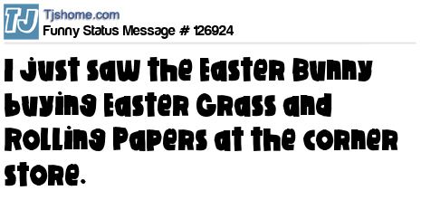 X I just saw the Easter Bunny buying Easter Grass and Rolling Papers at the corner store.
