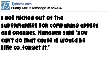 X says I got kicked out of the supermarket for comparing apples and oranges. Manager said "you can't do that cause it would be like co..forget it."